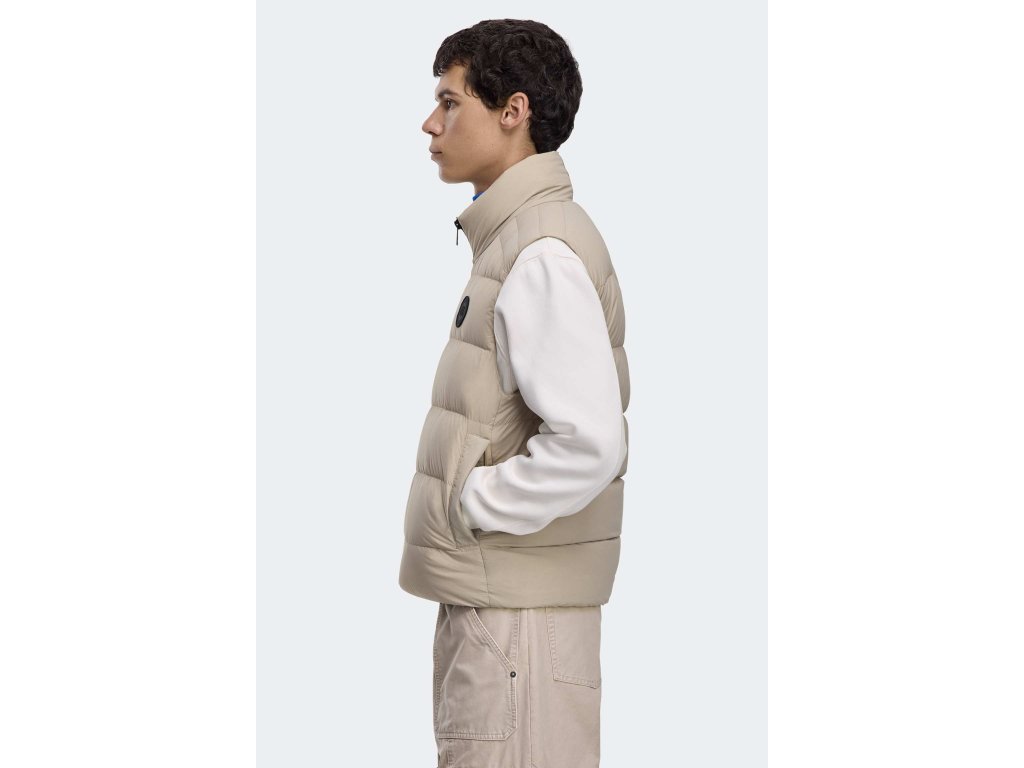 - složení: 100 % recyklovaný polyamid (výplň: 750 Fill Power, eticky získané prachové peří - 90 % prachové peří, 10 % peří)